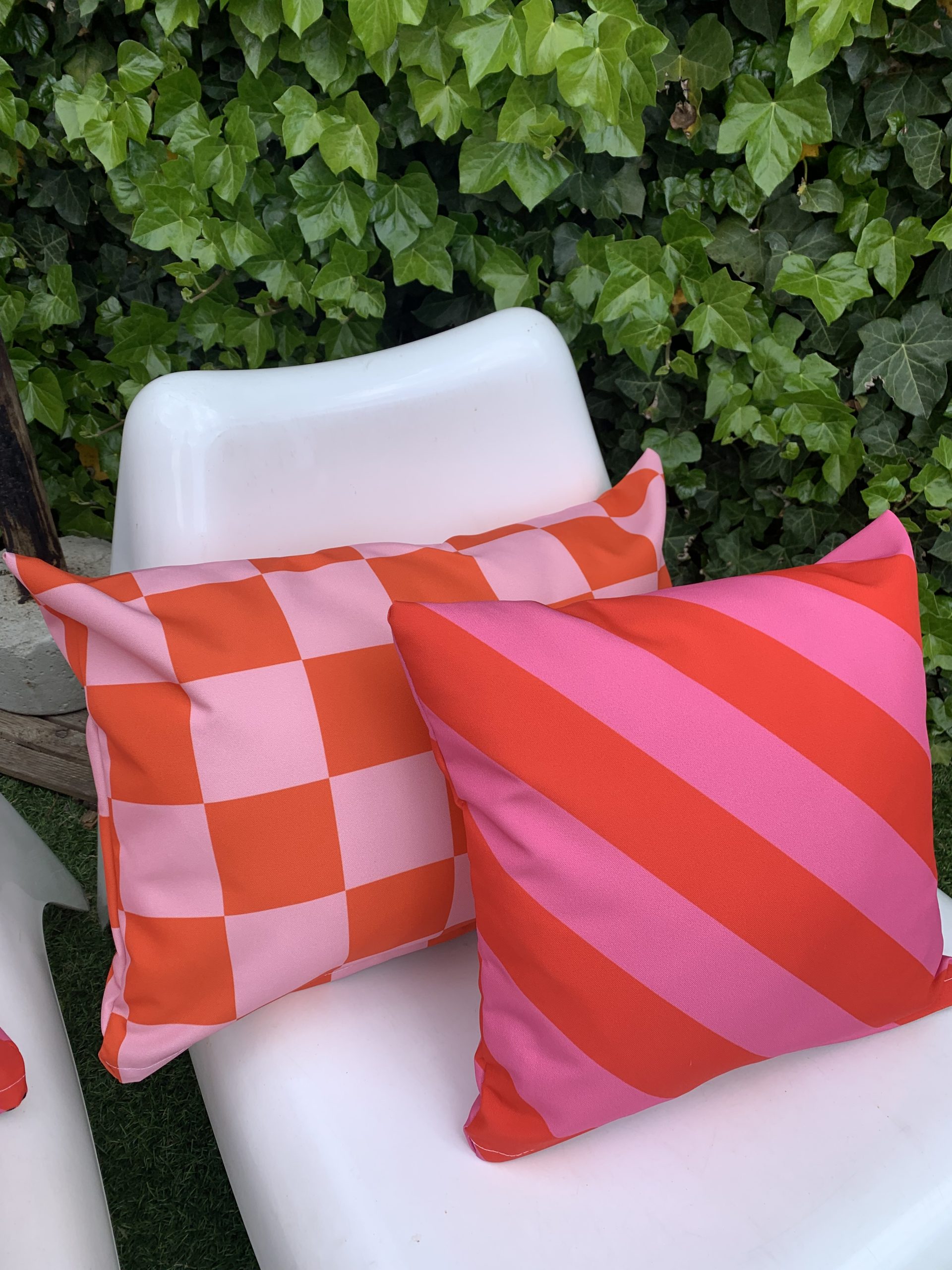 Buitenkussen rood lichtroze 60×40 gestreept of geblokt