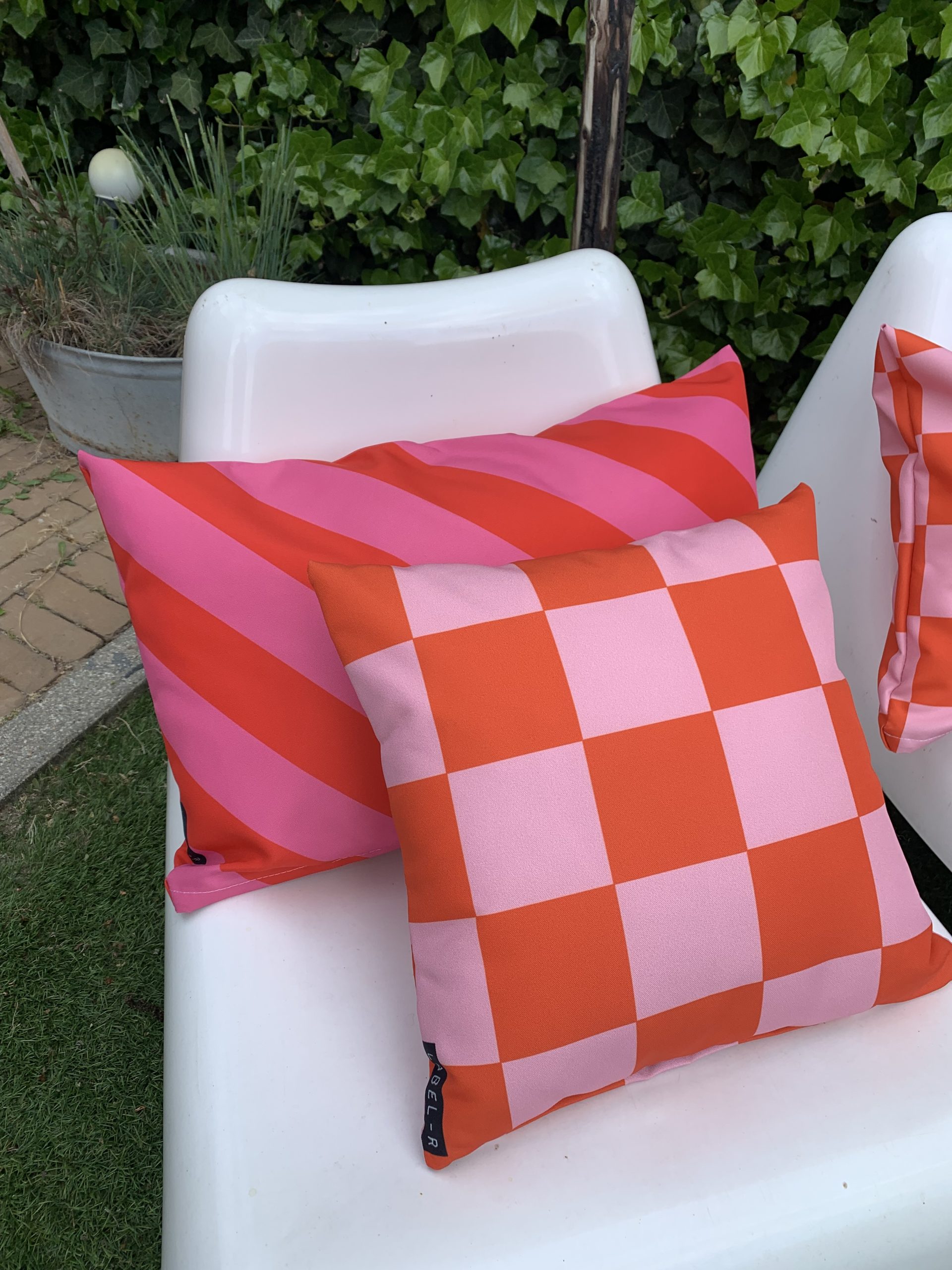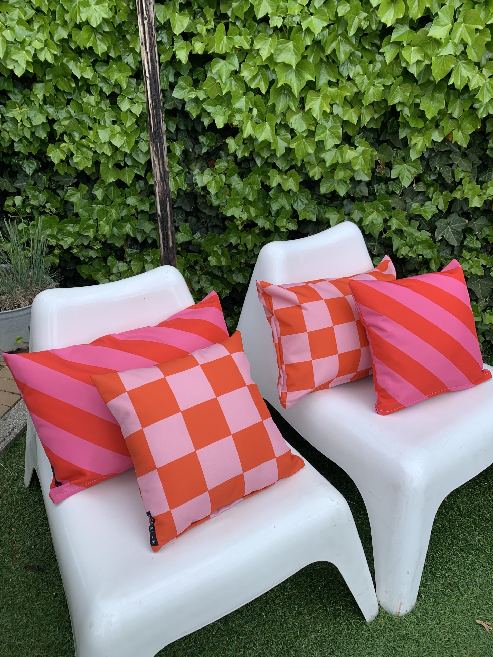 Outdoor kussens rood roze | Rood roze geblokt 60×40, Rood roze gestreept 60×40, Rood roze geblokt 40×40, Rood roze gestreept 40×40 |