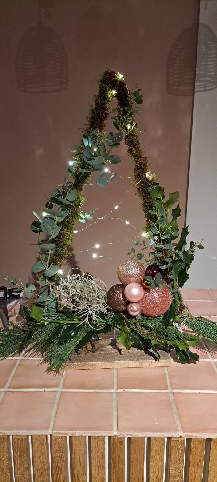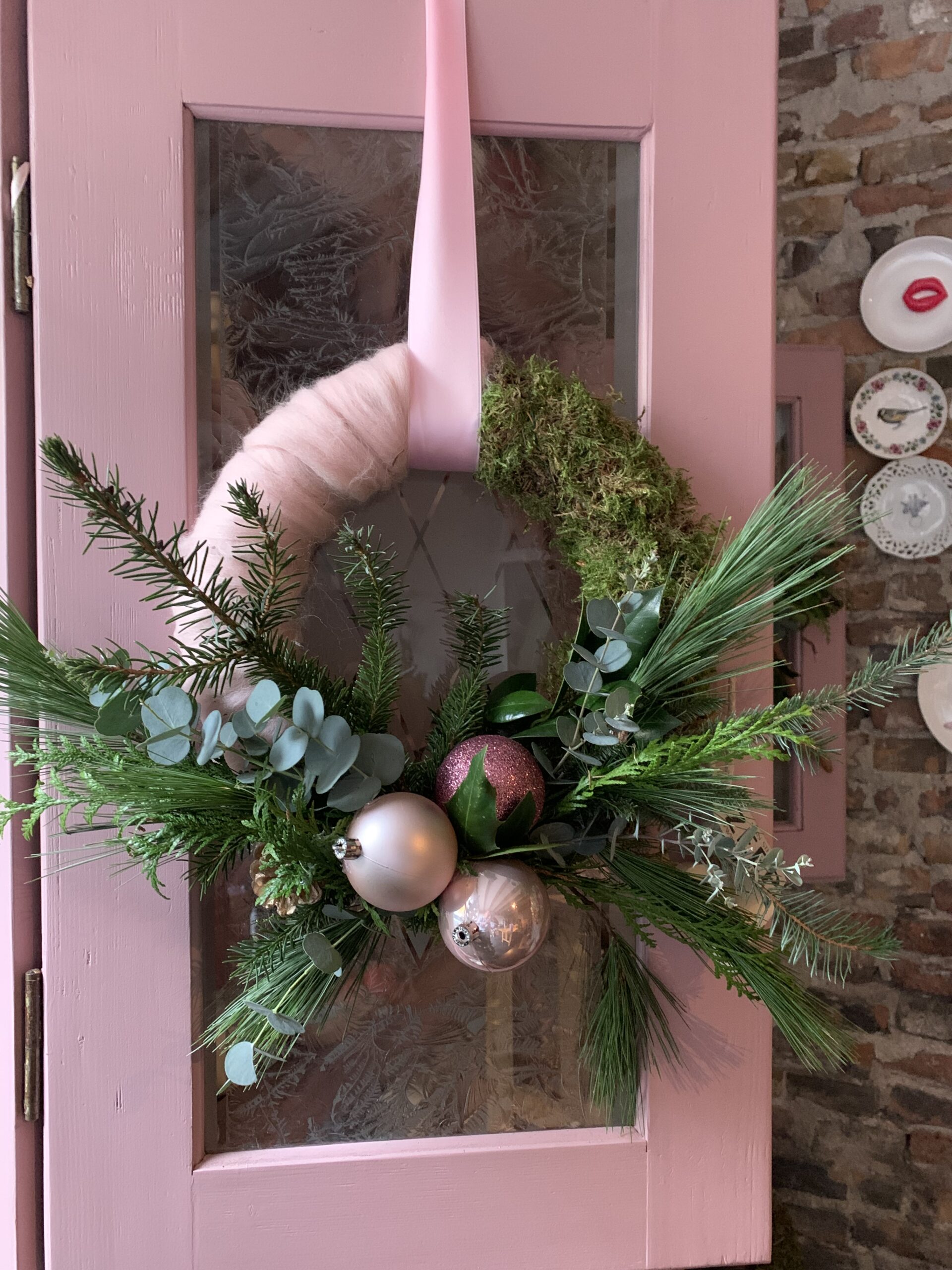 Na deze workshop ga je al naar huis met deze zelfgemaakte stuk of kerstkrans. Al het materiaal droogt mooi in waardoor je de krans wat langer kan laten hangen. Met wat kerstballen erin heb je een echte kerstkrans.