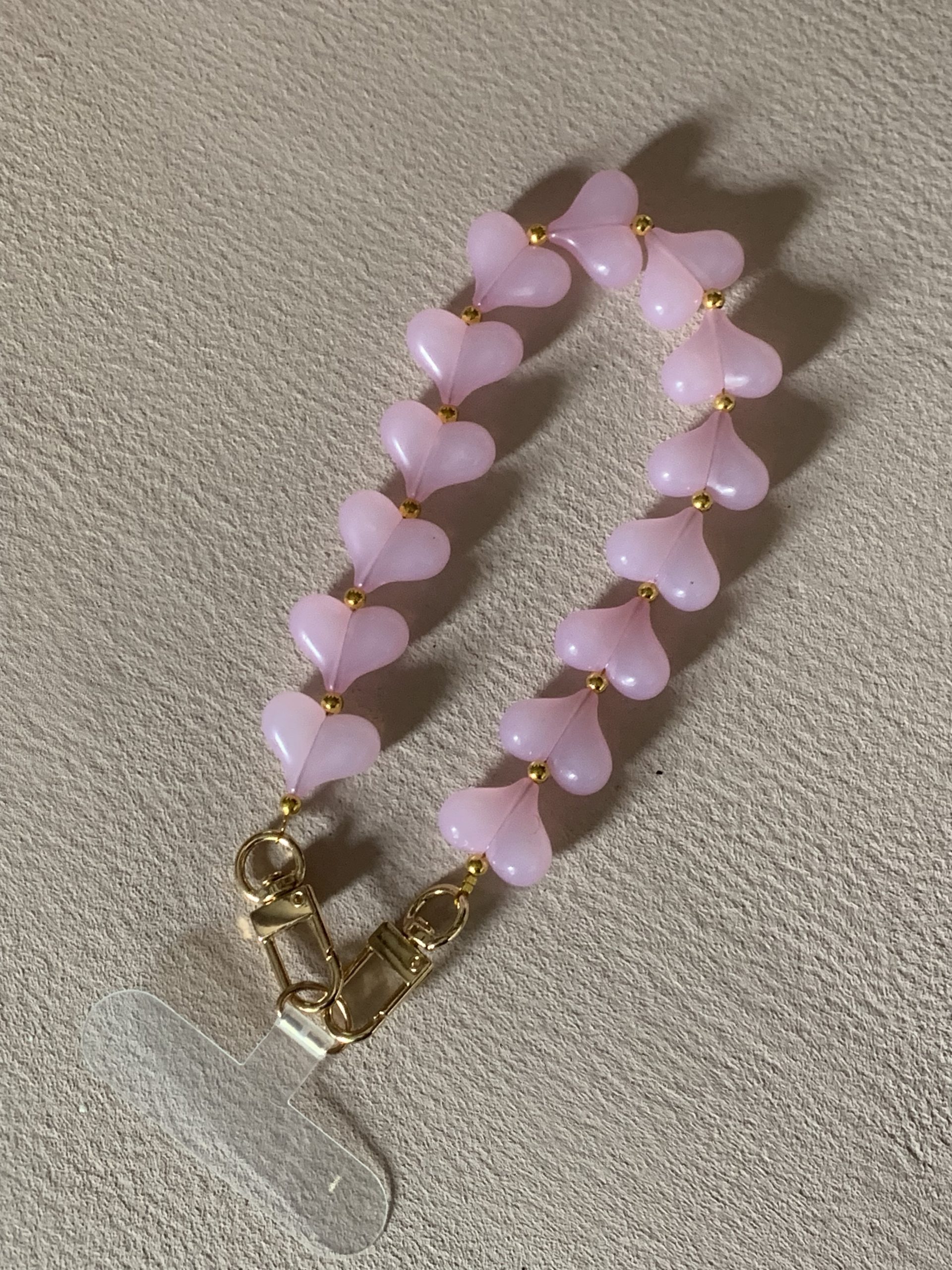 Super leuk hartjes telefoonkoord (kort). Met het plastic plaatje bevestig je deze makkelijk aan je telefoon. Je legt het plastic plaatje in het hoesje en zo zit het koord aan je telefoon. Je hangt hem handig aan je pols. In verschillende kleuren