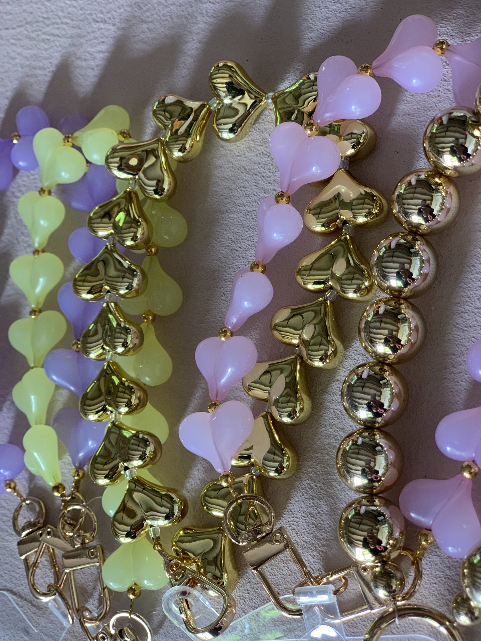 Telefoonkoord kort | Roze hartjes, Gouden hartjes, Lila hartjes, Gele hartjes, Gouden bolletjes |